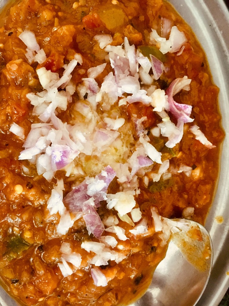 Ever wondered how the bright red colour is achieved in the Pav Bhaji of famous street stalls? Most of them use synthetic red colour to give that fiery hue to their mash vegetable curry. I never used synthetic colour and made peace with degi mirch or Kashmiri mirch which impart colour without adding significantly to the heat levels in a dish. But I was not satisfied. I was longing for that bright hue. I tried beetroot. It gave decent result but had a slight fuchsia/magenta or purple tinge. Not the crimson/tomato red. A few months ago, I cam across red Cockscomb or Celosia or murga kalgi or Velvet flower. I found out about it during my travels through Kashmir. It is the secret behind the fiery red colour of the famous Rogan Josh of Kashmiri Wazwan. The mutton curry receives its signature red colour from these flowers. They call it ‘Mawal’ there. So I decided to try it in Pav Bhaji as well. I soaked a flower in hot water for 15 minutes and used the water in the curry. It worked! Here is an image of the result. I am going to try this in red velvet cake next. I am also looking to use Alkanet root or Ratanjot soon and will update this post with the result. In the meanwhile, do share your experience with natural colouring agents. Have you used any? How did it go? Anything you would recommend?