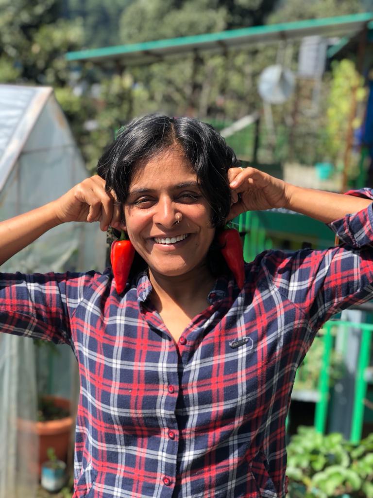 We have had a bumper harvest of jalapeños this year. Red and green both. Here I am goofing around with the red ones 😉